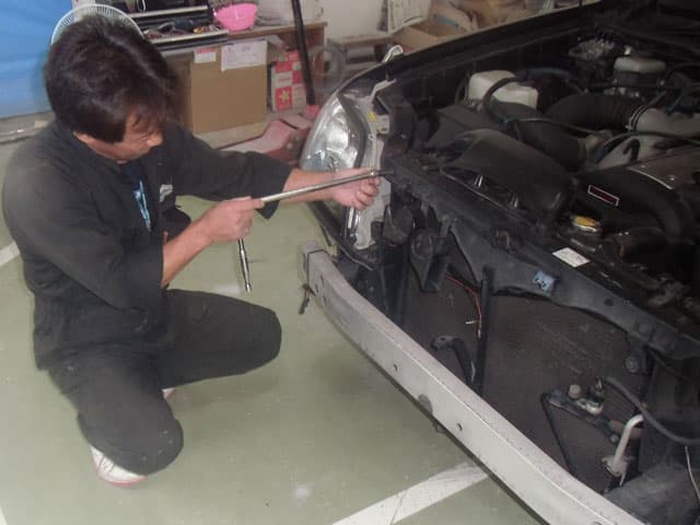 修理箇所を見落とさないよう損傷状況を確認し、車体から取り外して分解します。